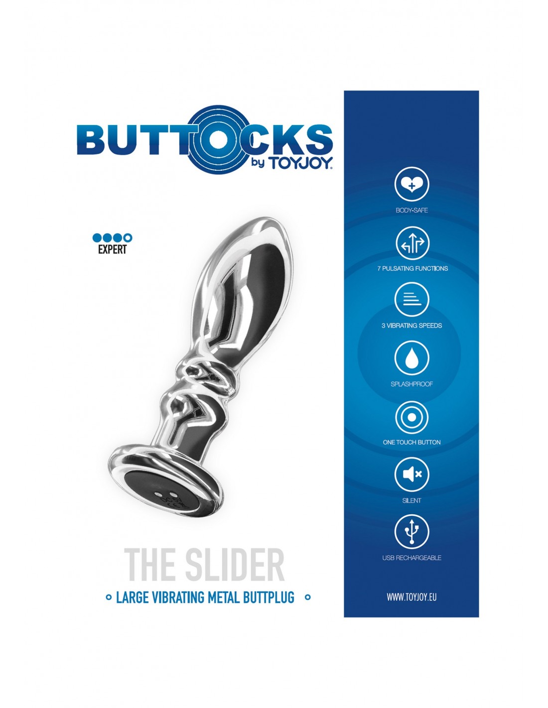 Lo Slider di Buttocks di TOYJOY: il plug anale vibrante in metallo per eccellenza per chi cerca un piacere di livello superiore! Realizzato in robusto acciaio inossidabile, è disponibile in due dimensioni per soddisfare le tue preferenze. Con 7 entusiasmanti modalità di vibrazione e 3 velocità, hai il controllo totale. Ricaricabile tramite USB per un divertimento senza interruzioni. Il design affusolato garantisce un inserimento facile e comodo, ideale per utenti avanzati ed esperti. Migliora i tuoi momenti intimi con The Slider, dove il design senza soluzione di continuità incontra una soddisfazione sensazionale. Preparati a provare il piacere come mai prima d'ora!