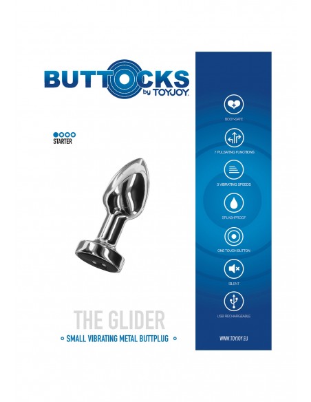 The Glider di Buttocks by TOYJOY - il tappo anale definitivo per il massimo piacere! Questo elegante giocattolo è realizzato in acciaio inossidabile resistente e è disponibile in tre taglie. Con 7 diversi modi di vibrazione e 3 velocità tra cui scegliere, puoi personalizzare la tua esperienza. Inoltre, è facilissimo ricaricare tramite USB. La forma affusolata facilita l'inserimento, garantendo comfort ad ogni utilizzo. Eleva i tuoi momenti intimi con The Glider - dove la semplicità incontra il piacere sensazionale!