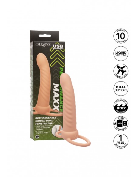 Presentiamo il Performance Maxx Rechargeable Ribbed Dual Penetrator, una sonda versatile progettata per esperienze intense di doppia penetrazione. Con 10 funzioni di vibrazione, pulsazione ed escalation, offre avventure personalizzate, dalle tenere carezze alle potenti onde di piacere. La sua texture a coste intensifica le sensazioni, mentre la realizzazione in Silicone Liquido garantisce morbidezza e durata. Impermeabile con valutazione IPX7, è pronto per l'esplorazione in diversi contesti. Dotato di anello scrotale integrato, chip di memoria e funzione di blocco viaggio, assicura un godimento senza interruzioni e sicuro. Ricaricabile tramite USB, offre 60 minuti di piacere ad alta intensità o 90 minuti con impostazione più bassa dopo soli 1,5 ore di ricarica. Libera la tua curiosità con il Performance Maxx Rechargeable Ribbed Dual