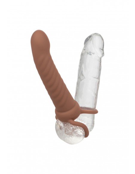 Guaina indossabile per doppia penetrazione vibrante ricaricabile USB Slim Brown