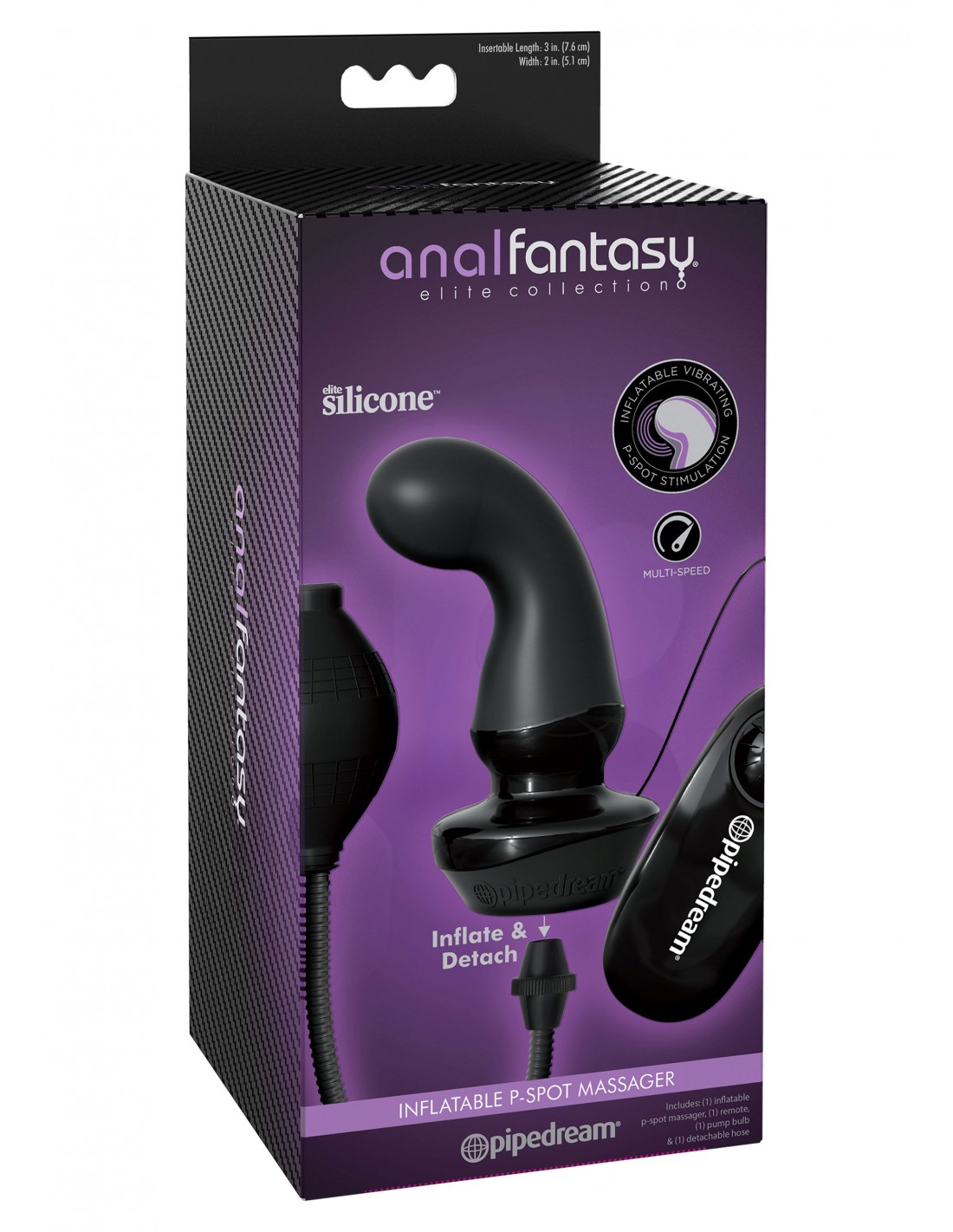 Quando stai cercando di portare il tuo gioco anale al livello successivo, la Collezione Anal Fantasy® Elite è la scelta migliore per l'eccitazione anale di fascia alta e il gioco della prostata. Realizzata con il nostro ultra-igienico Elite Silicone™, la collezione Elite è sicura per il corpo, senza ftalati, senza lattice e fatta per giocare duro. Utilizzando la più recente tecnologia ricaricabile USB, le spine e le sonde Elite Collection sono progettate con cura per il massimo comfort e la soddisfazione garantita. Perfetta per qualsiasi genere, la collezione unisex è ricca di caratteristiche strabilianti che offrono emozioni incredibili e risultati esplosivi! Design della prostata: stimola le aree giuste. Valvola di rilascio dell'aria: una volta staccato il tubo, premere il pulsante sul fondo per sgonfiare il tappo. Silicone gonfiabile Elite: espanditi. Non gonfiare eccessivamente! Motore potente - rivestito in silicone liscio. Vibrazioni multi-velocità - forniscono un'intensa sensazione anale. Tubo staccabile - rimuovi il tubo e goditi il tuo plug anale senza accessori ingombranti. Design indossabile a mani libere: il bulbo della pompa e il tubo flessibile sono rimovibili per consentire una comoda mobilità. Il massaggiatore gonfiabile P-Spot Anal Fantasy® Elite offre una sensuale sensazione di pienezza con un design indossabile completamente a mani libere. Mentre la sfera della pompa in stile medico ti consente di riempire il tappo gonfiabile secondo le tue preferenze di dimensioni perfette, il tubo staccabile ti consente di goderti il massaggiatore senza accessori ingombranti. Con un telecomando multivelocità che offre potenti vibrazioni, le possibilità di piacere sono infinite! Caratterizzato da Elite Silicone™ ultra-liscio e un design affusolato indossabile, il plug si gonfia facilmente per creare una sensazione piena e stimolante e un profondo piacere anale sia indossato da solo che durante il sesso. Il massaggiatore prostatico abilmente curvo si adatta ai contorni del tuo corpo per colpire ogni volta il punto giusto! Istruzioni per la cura: la pulizia è un gioco da ragazzi dopo il divertimento con Refresh® Toy Cleaner e acqua calda. Usa abbondante Moist® Body Lotion per un incontro extra bagnato e selvaggio. Kit di preparazione 4 pezzi GRATUITO incluso! 1 oncia. Aggiorna il detergente per giocattoli1 oz. Lubrificante anale umido1x crema Anal Ease Insertz™1x guanto in nitrile