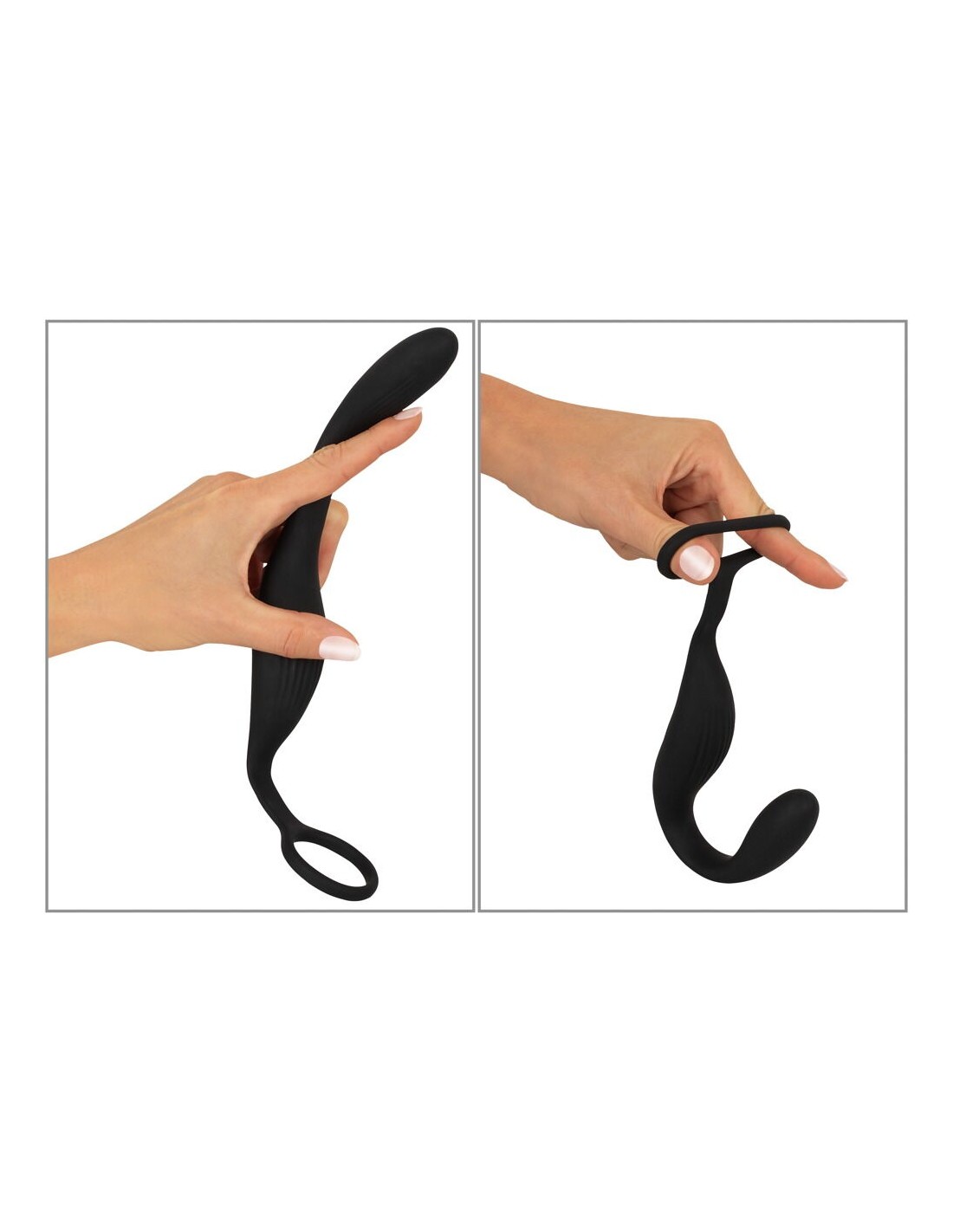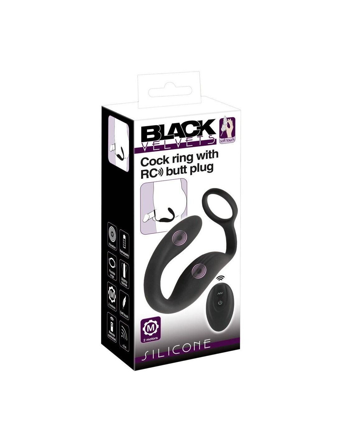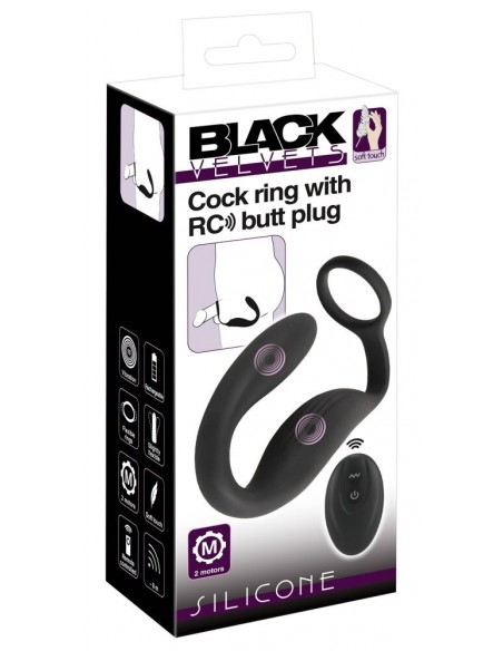 Il Cock ring con butt plug RC di Black Velvets combina un vibratore per prostata e perineo con un cock ring. L'anello elastico si adatta perfettamente al pene e può sostenere efficacemente l'erezione grazie all'effetto di congestione del sangue. Allo stesso tempo, il vibroplug inserito con il suo design curvo del punto P fornisce un'intensa stimolazione nella parte posteriore del pene. Il vibratore perineale, morbido e stimolante, si adatta perfettamente al perineo e fornisce un'ulteriore stimolazione. Il tutto è saldamente collegato in modo che il plug non possa scivolare e sia tenuto saldamente in posizione. Realizzato in silicone dalla texture vellutata e setosa, il sofisticato imbracatura vibrante si adatta in modo flessibile al corpo e ai movimenti. Massimo comfort durante il sesso e l'uso prolungato!