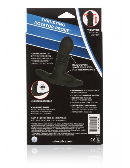 La sonda Eclipse Thrusting Rotator è il biglietto per un paese delle meraviglie di piacere anale malizioso per principianti beati o esperti di erotismo. La sonda a 12 funzioni combina potenti vibrazioni e stimolazione intensa con emozionanti azioni rotanti e di spinta e due potenti motori. Scegli l'intensità del tuo piacere e cavalca le onde della stimolazione interna orgasmica con azioni sincronizzate di rotazione, vibrazione e spinta. L'asta sensualmente curva, la base sagomata e il controllo easy-push ti consentono di immergerti in profondità nella stimolazione senza sforzo. Due potenti motori di vibrazione nell'asta e nella base forniscono una stimolazione backdoor rimbombante, mentre il corpo sagomato si flette e si muove con te durante i tuoi momenti più a luci rosse. Goditi un inserimento confortevole, una stimolazione senza sforzo e una rimozione delicata con la delicata forma ergonomica, il design flessibile e la base curva. Ricarica il massaggiatore in silicone di alta qualità in 90 minuti con il cavo di ricarica USB in dotazione per goderti 45 minuti di stimolazione ad alta velocità o 60 minuti di vibrazioni a bassa velocità. Mentre il pulsante semplice controlla l'intensità e la sonda spessa ti offre la stimolazione che desideri, il chip di memoria integrato all'avanguardia ricorda esattamente come la preferisci, partendo dall'ultima funzione utilizzata.