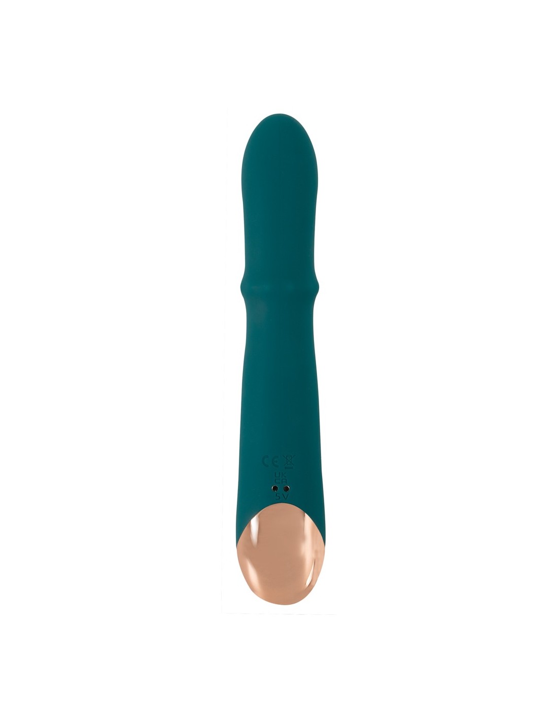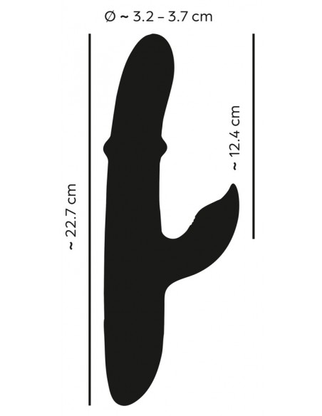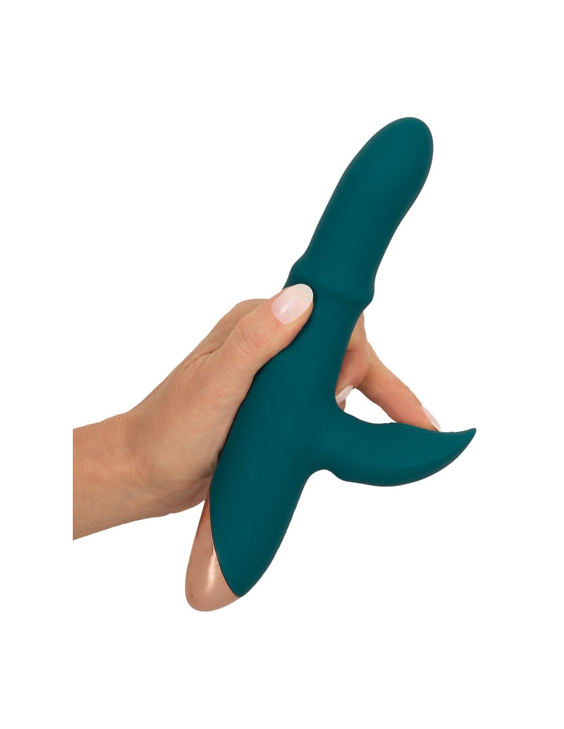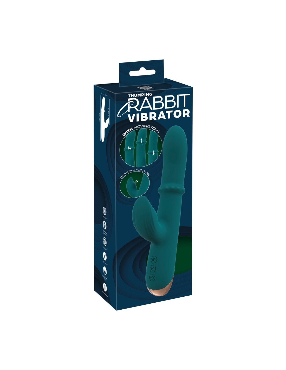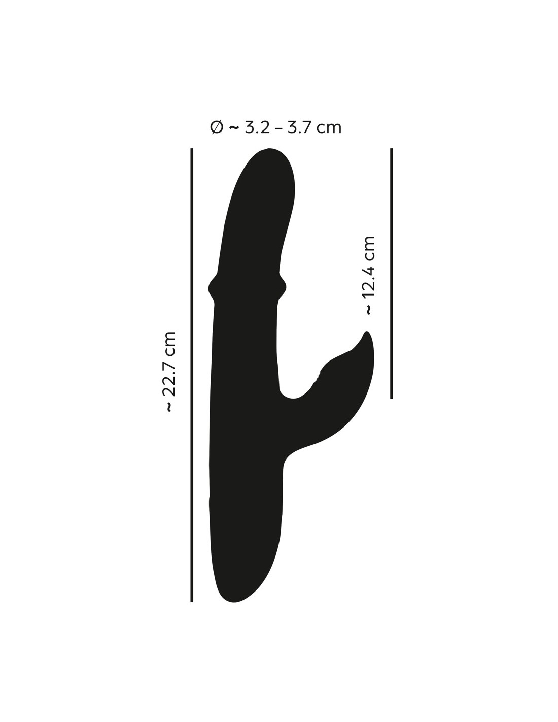 Il pratico vibratore Rabbit Thumping con anello mobile di You2Toys stimola due centri del piacere contemporaneamente! All'interno della vagina con vibrazioni intense e l'anello massaggiante a sfera (anello mobile) che si muove su e giù. E all'esterno, il clitoride con impulsi dinamici. Doppio piacere per un doppio climax!