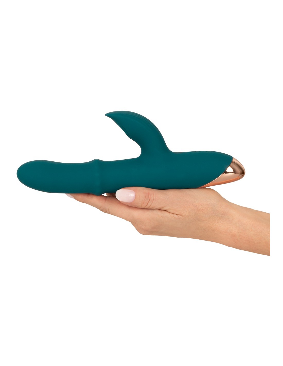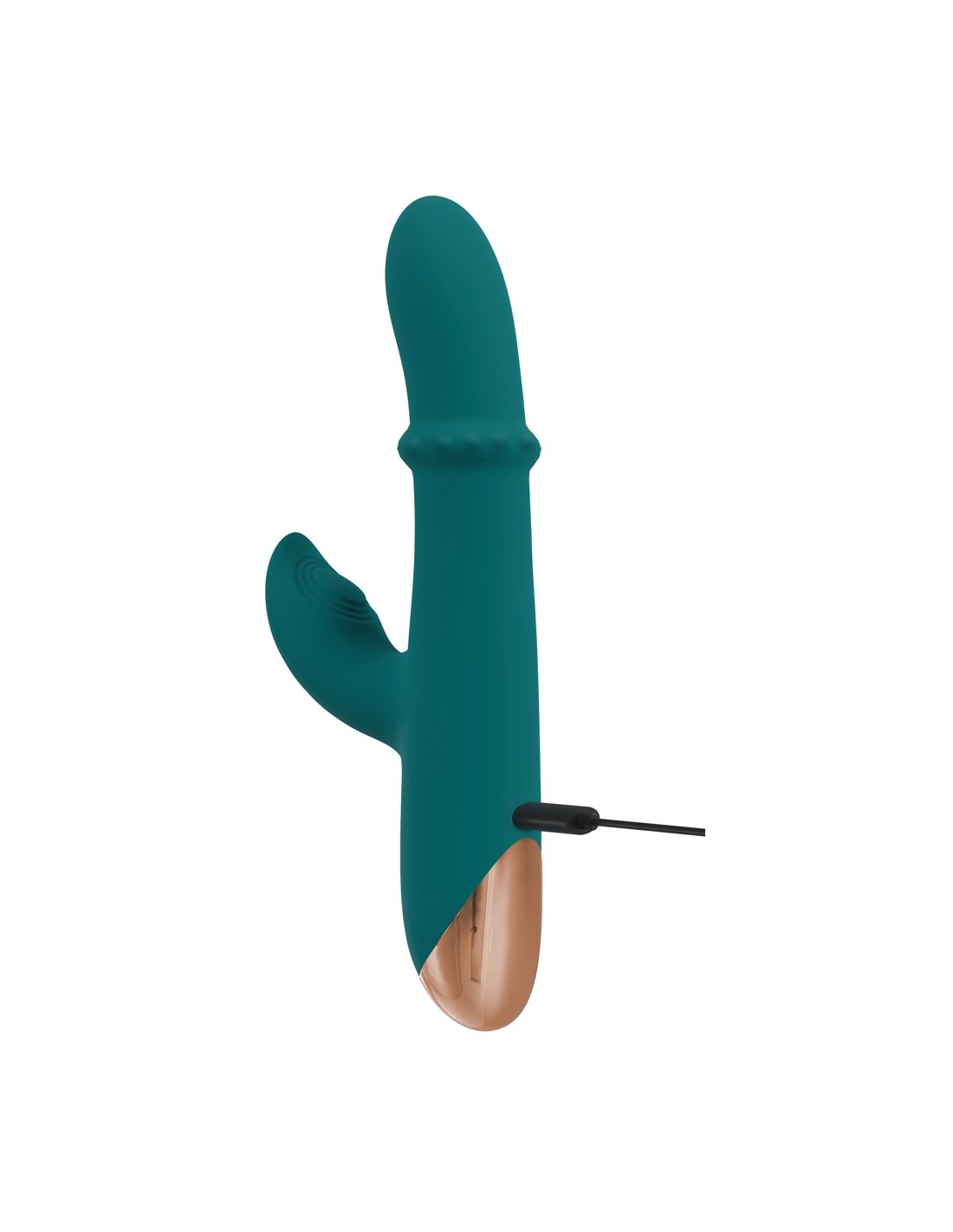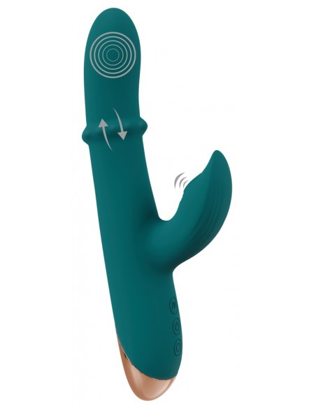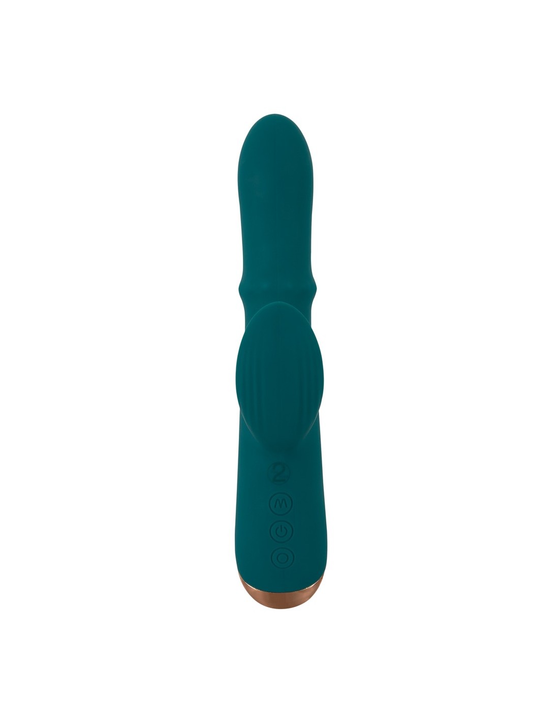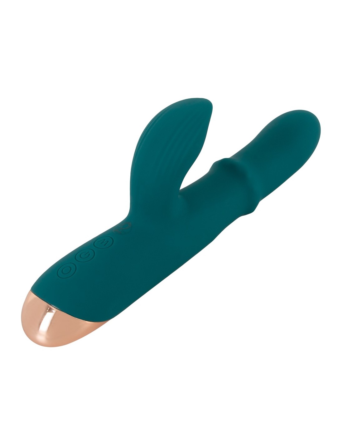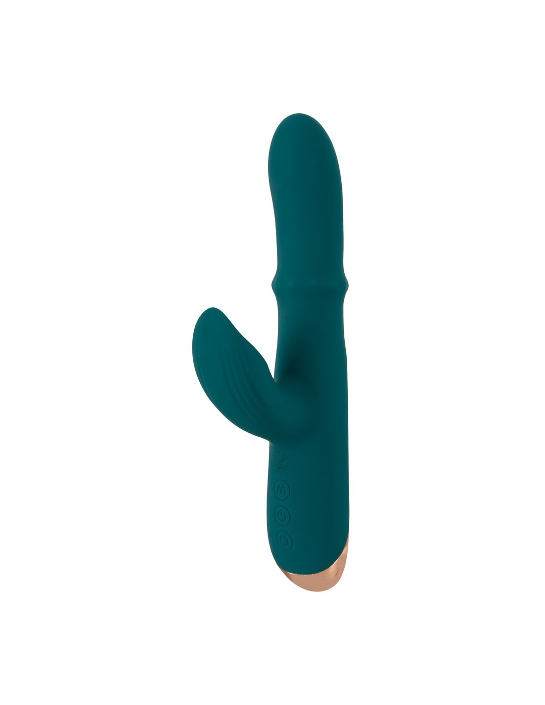 Il pratico vibratore Rabbit Thumping con anello mobile di You2Toys stimola due centri del piacere contemporaneamente! All'interno della vagina con vibrazioni intense e l'anello massaggiante a sfera (anello mobile) che si muove su e giù. E all'esterno, il clitoride con impulsi dinamici. Doppio piacere per un doppio climax!