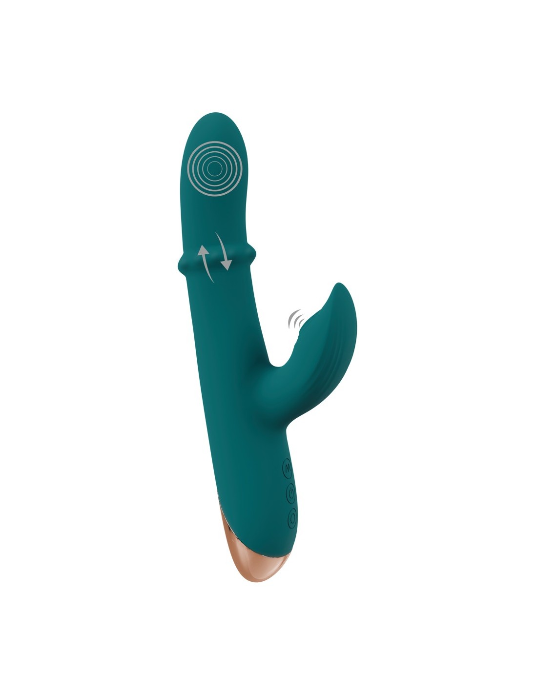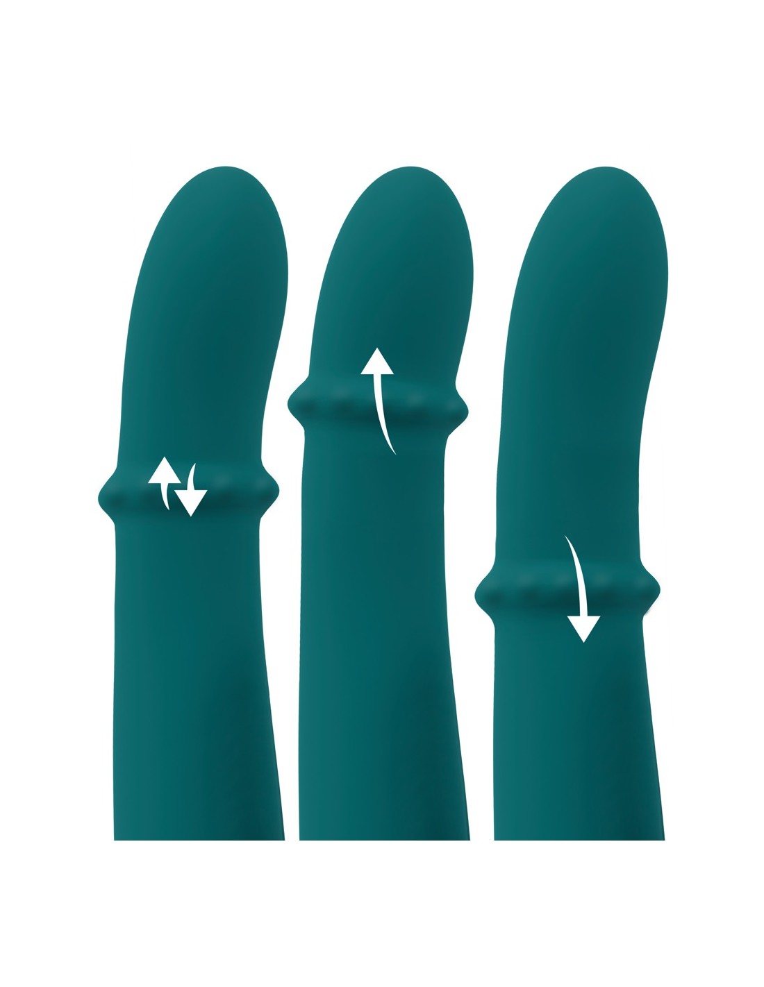 Per una doppia stimolazione sofisticata, sono disponibili 10 modalità di massaggio dell'anello mobile nel fusto rigido e 7 modalità di vibrazione nella punta rigonfia per un piacere lussurioso. Il braccio flessibile e perfettamente sagomato per la stimolazione del clitoride offre 7 modalità di pulsazione. Tutte le funzioni possono essere comodamente controllate direttamente sul toy con la semplice pressione di un pulsante, separatamente o combinate in modo eccitante. Non meno di 3 potenti motori forniscono una potenza affidabile.