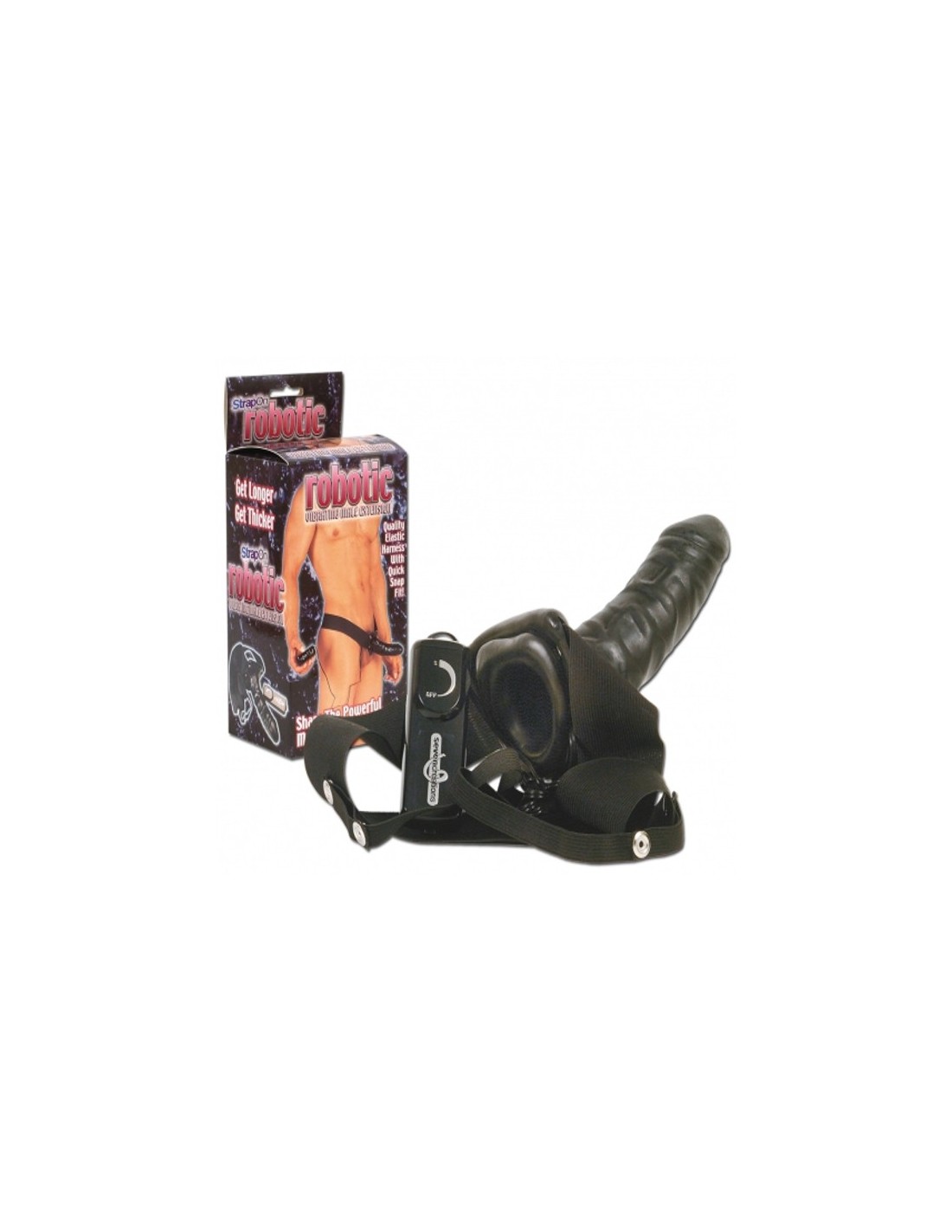 ROBOTIC VIBRATING MALE EXTENSION STRAP ON FALLO INDOSSABILE VIBRANTE NERO