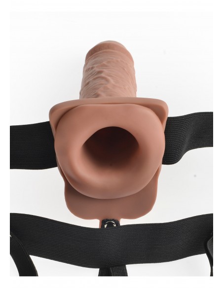Have you always wanted to feel more confident about your size and enjoy satisfying sex with your partner long enough for both of you to reach orgasm? Your lover knows that size matters—and nothing can fulfill fantasies and please a partner like a confident man that knows what he’s doing! Now you can have the length and girth you’ve always dreamt of and be all the man you can be with the Fetish Fantasy Series 7″ Hollow Rechargeable Strap-On with Balls. Say goodbye to embarrassing midway letdowns and say hello to a satisfying smile from your lover! The comfortable elastic harness easily adjusts to fit most sizes, while the 7' lifelike dildo hits the right spot every time. It’s perfect for men with ED, premature ejaculation problems, or couples looking to add a little flair to their fun. Best of all, you can still enjoy hot, face-to-face sex and ensure that both of you get off together!The rechargeable hollow strap-on is ready to go when you are and you’ll never have to worry about changing batteries again. Press and hold the button on the left testicle for three seconds to power on, then press the button again to cycle through ten thrilling pulsation patterns. Powered by a long-lasting lithium-ion battery, the super strong Japanese motor delivers thrilling, multi-speed vibrations at the tip of the dildo—precisely where your partner wants them most. The dildo is body-safe, latex-free, and compatible with both water-based and silicone-based lubricants. Cleanup is a snap after the fun with Pipedream toy cleaner and warm water. The included USB charging cord works with most USB power sources.Comfortable elastic harnessLifelike dildoRechargeable