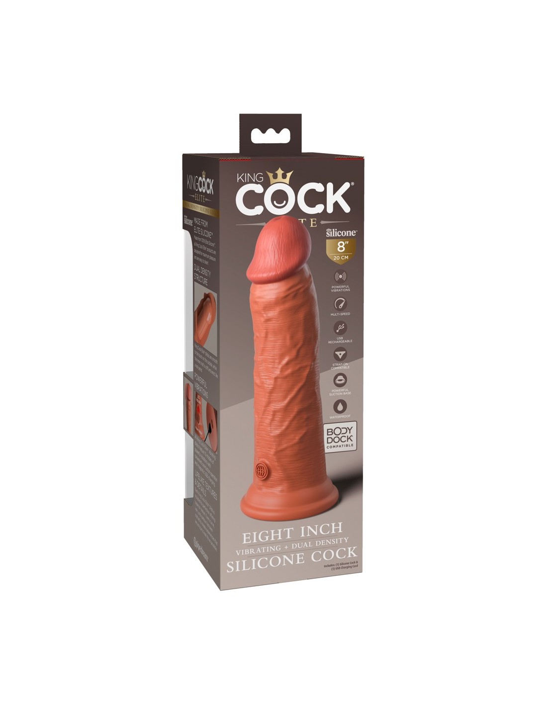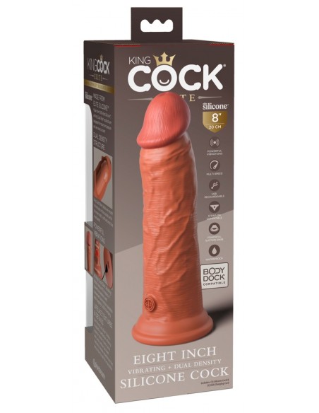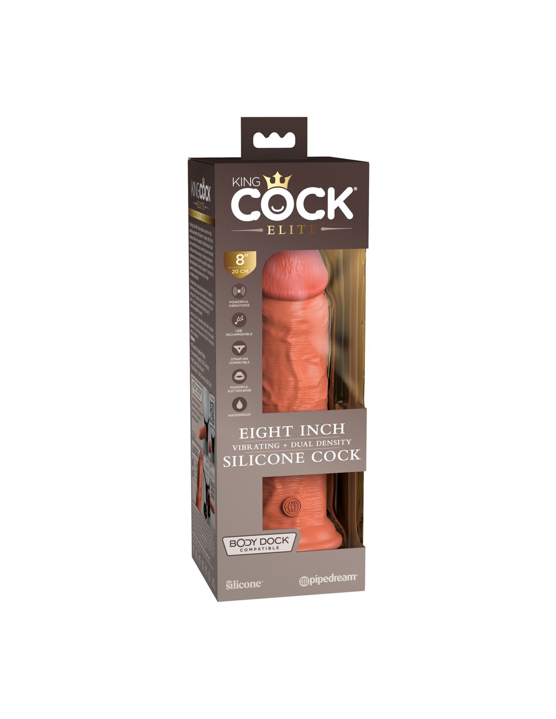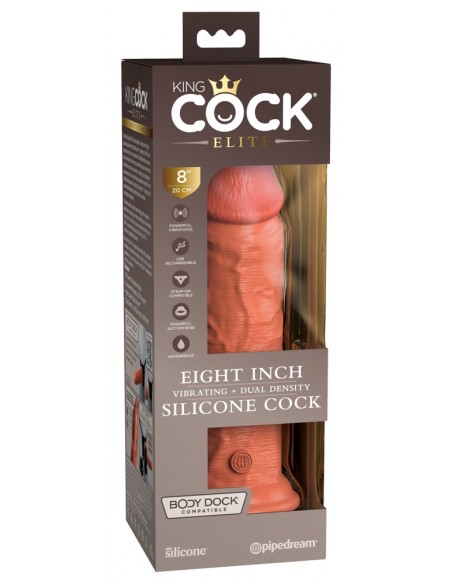 Vibratore naturale ricaricabile 8" vibrante + Dual Density Silicone Cock di King Cock Elite in look iper-realistico del pene fatto di materiale siliconico a doppia densità che si sente come la vera pelle. Il vibratore stesso (come un vero membro eretto) ha un'asta ferma, ma flessibile che rende l'esperienza di piacere il più realistica possibile.