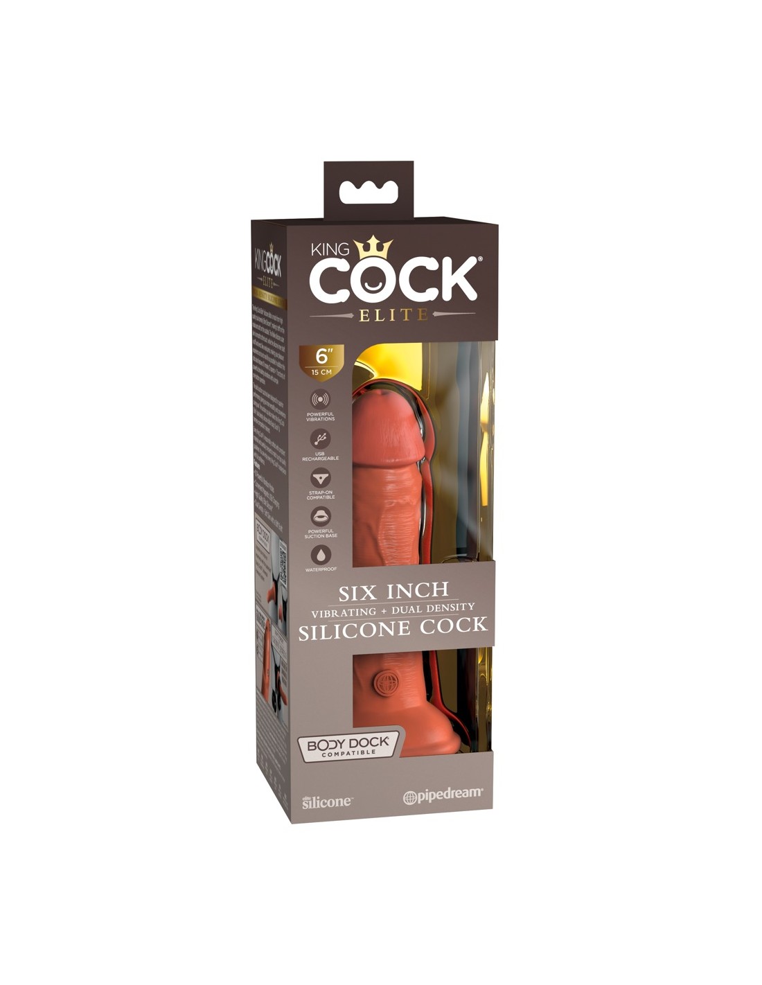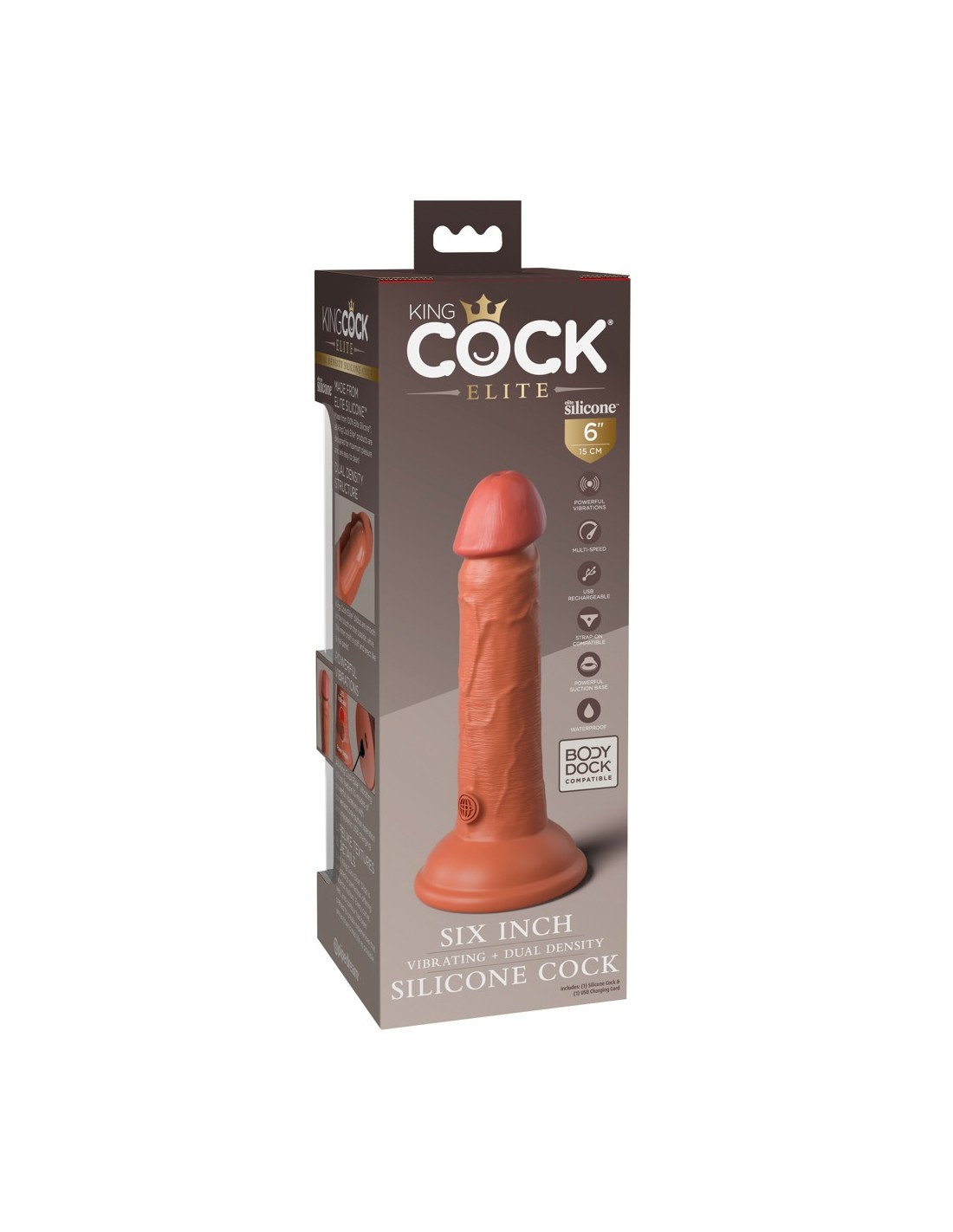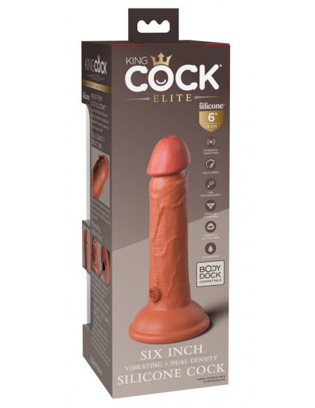 Vibratore naturale ricaricabile 6" vibrante + Dual Density Silicone Cock di King Cock Elite in look iper-realistico del pene fatto di materiale siliconico a doppia densità che si sente come la vera pelle. Il vibratore stesso (come un vero membro eretto) ha un'asta ferma, ma flessibile che rende l'esperienza di piacere il più realistica possibile.