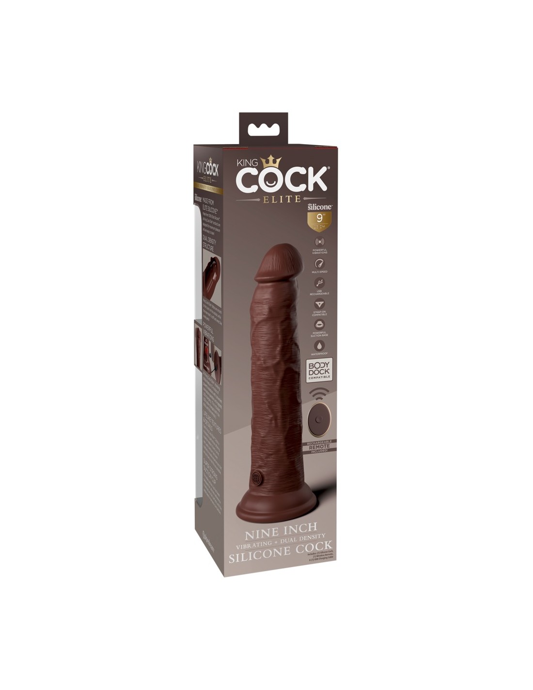 Vibratore naturale ricaricabile 9" vibrante + Dual Density Silicone Cock con telecomando da King Cock Elite in look iper-realistico pene fatto di materiale in silicone a doppia densità che si sente come la pelle reale. Il vibratore stesso (come un vero membro eretto) ha un'asta ferma ma flessibile che rende l'esperienza di piacere il più realistica possibile.