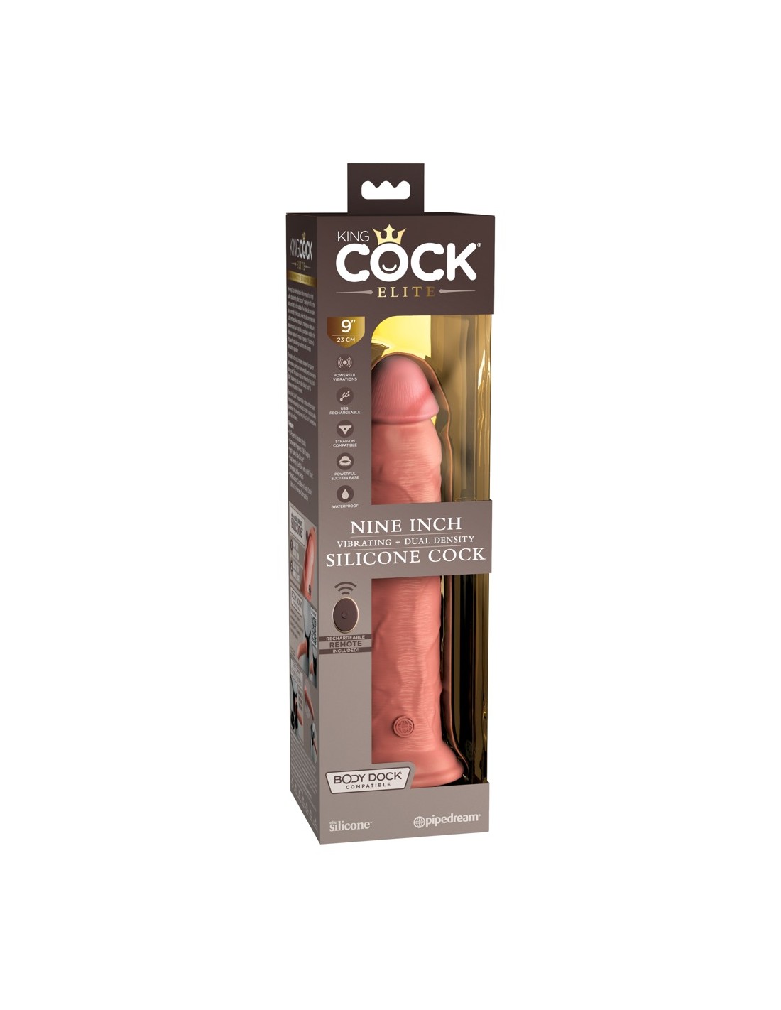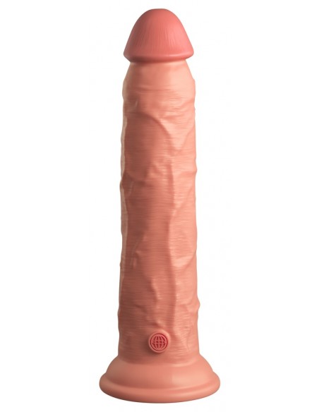Vibratore naturale ricaricabile 9" vibrante + Dual Density Silicone Cock con telecomando da King Cock Elite in look iper-realistico pene fatto di materiale silicone a doppia densità che si sente come la pelle reale. Il vibratore stesso (come un vero membro eretto) ha un'asta ferma ma flessibile che rende l'esperienza di piacere il più realistica possibile.